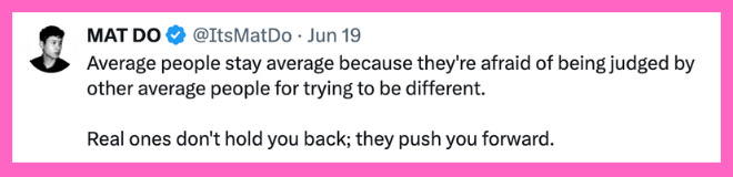 This is why most people stay stuck - because they’re scared of doing something different to the pack or scared of being laughed at or appearing stupid or they are talked out of it.